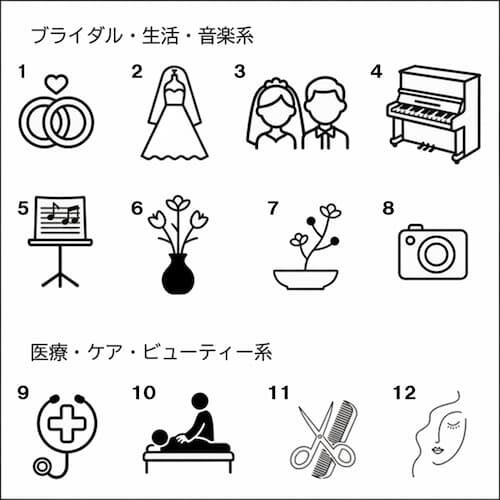 イラストは36種類のデザインからお選びいただけます。2次元コードまたは自社ロゴの追加をご希望の方は、スタンダードプランをご利用ください。