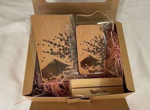 セット内容:①NFC木製カード1枚/②カード専用スタンド1つ/③NFC木製キーホルダー1つ/④高機能デジタル名刺(カード・キーホルダー各1つ)/⑤ギフト包装
